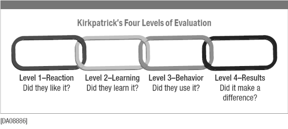 Adults crave the ability to apply what they’ve learned, and absent that opportunity, want instructors to use examples that demonstrate its application. (Ideally, instructors aspire to guide learners through instruction that adheres to the Kirkpatrick Evaluative Model [see Figure 1], though contracted occupational educators may not have access to data to confirm Levels 3 or 4.)